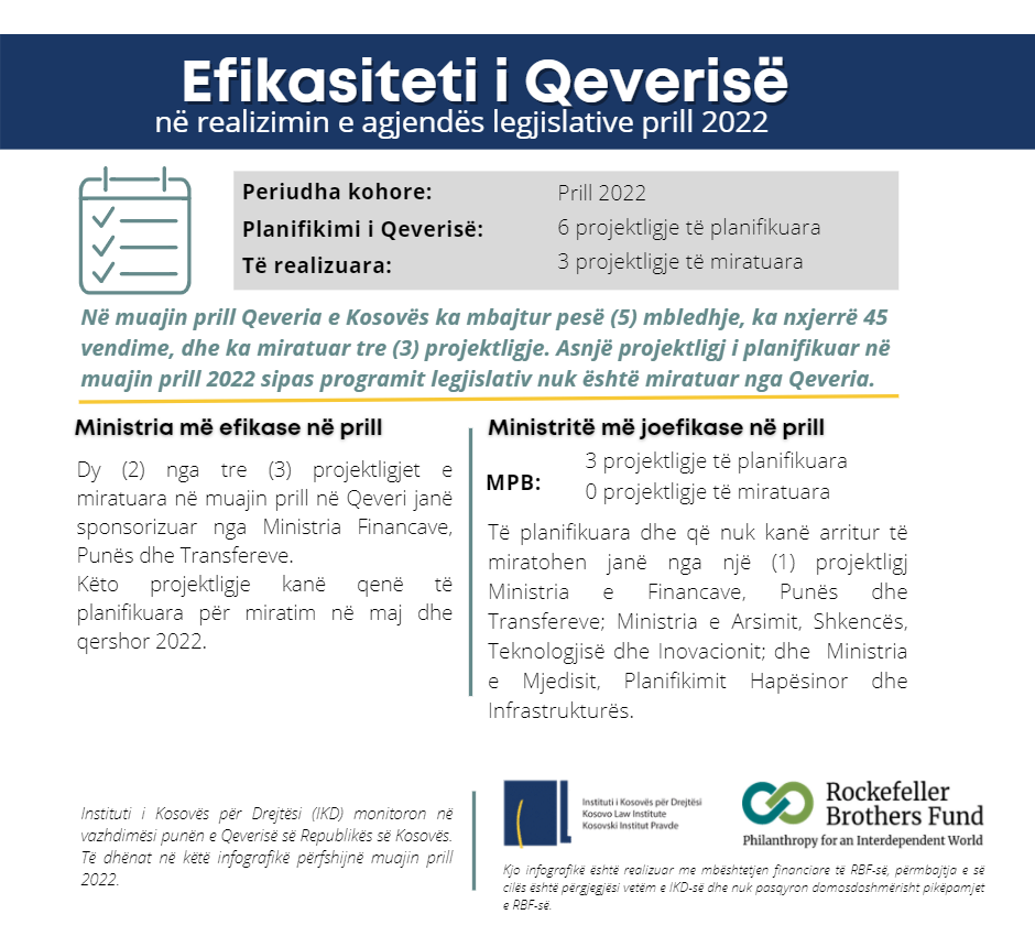 Efikasiteti i Qeverisë në realizimin e agjendës legjislative gjatë prillit 2022
