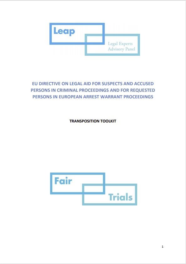 EU DIRECTIVE ON LEGAL AID FOR SUSPECTS AND ACCUSED PERSONS IN CRIMINAL PROCEEDINGS AND FOR REQUESTED PERSONS IN EUROPEAN ARREST WARRANT PROCEEDINGS: TRANSPOSITION TOOLKIT
