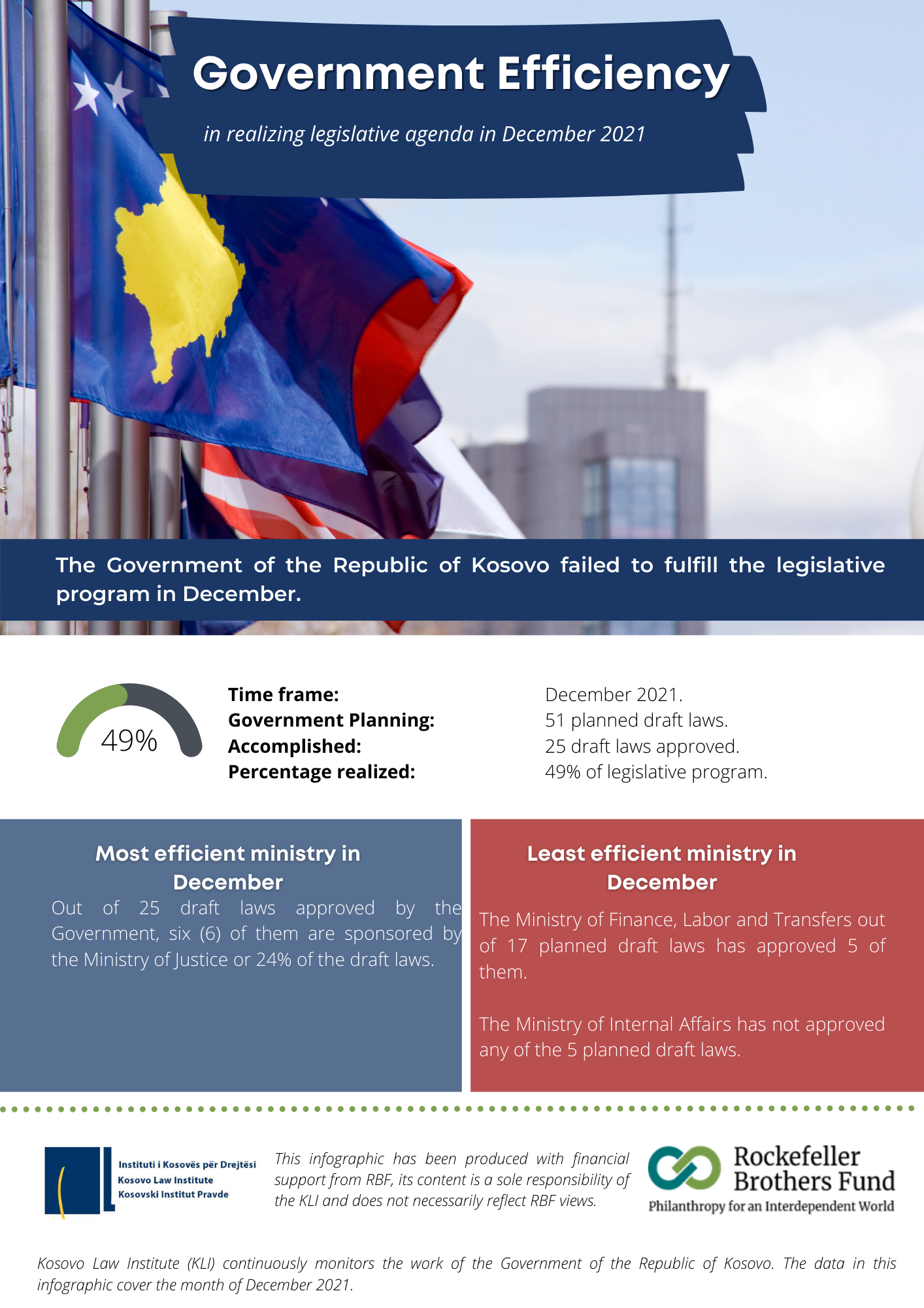 KLI findings show that the Government of the Republic of Kosovo in December 2021 failed to fulfill the legislative program.