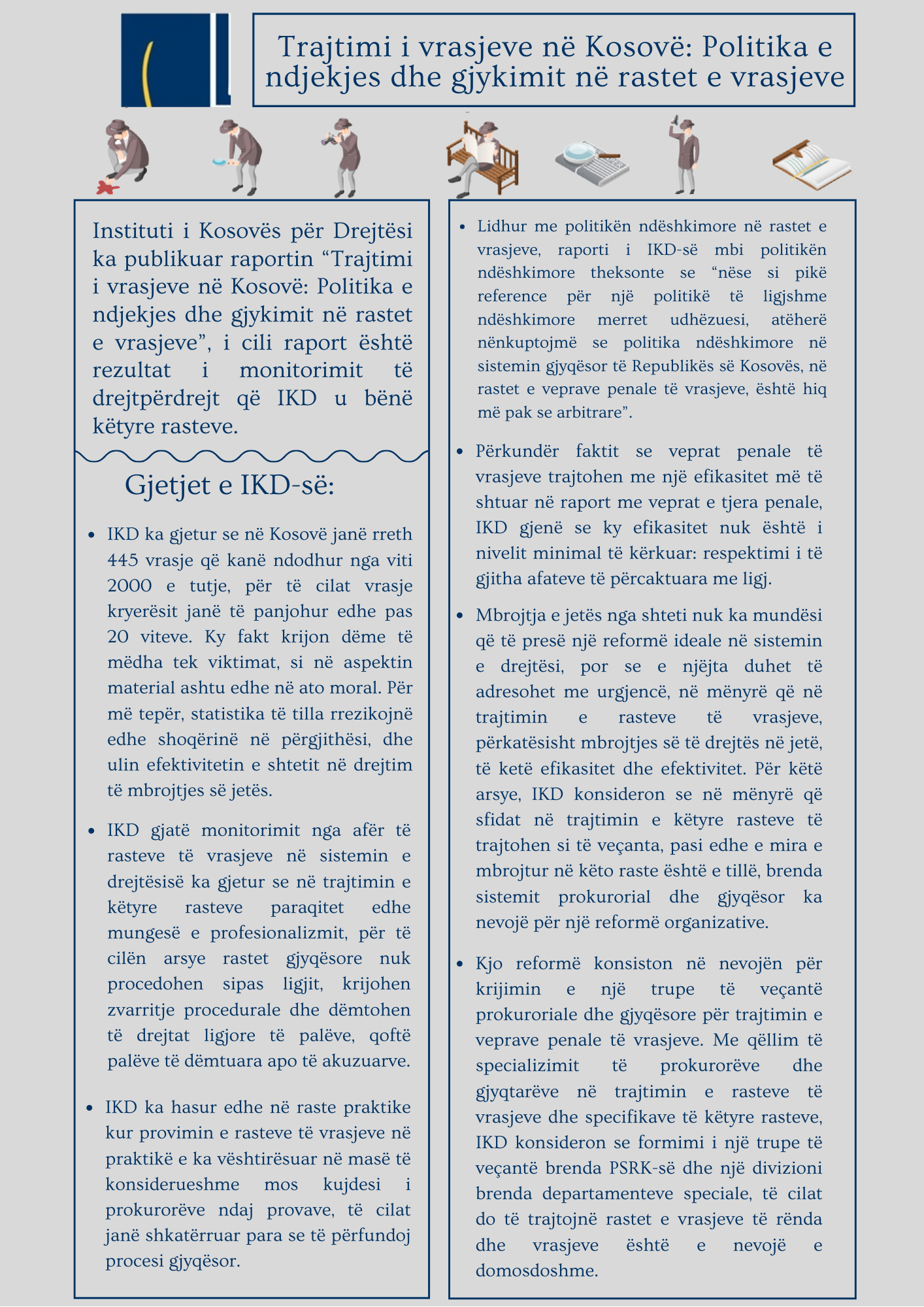Për më tepër, gjeni bashkangjitur raportin e IKD-së: “Trajtimi i vrasjeve në Kosovë (Politika e ndjekjes dhe gjykimit në rastet e vrasjeve)”, si dhe më poshtë fletën e fakteve: