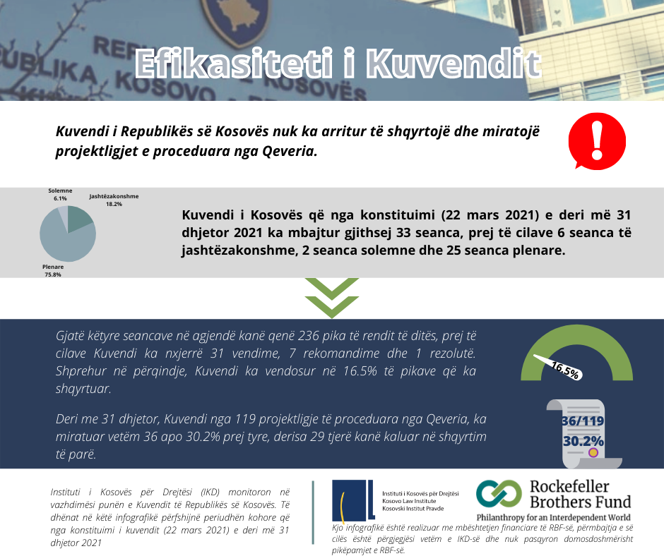 Instituti i Kosovës për Drejtësi (IKD) monitoron në vazhdimësi punën e Kuvendit të Republikës së Kosovës.