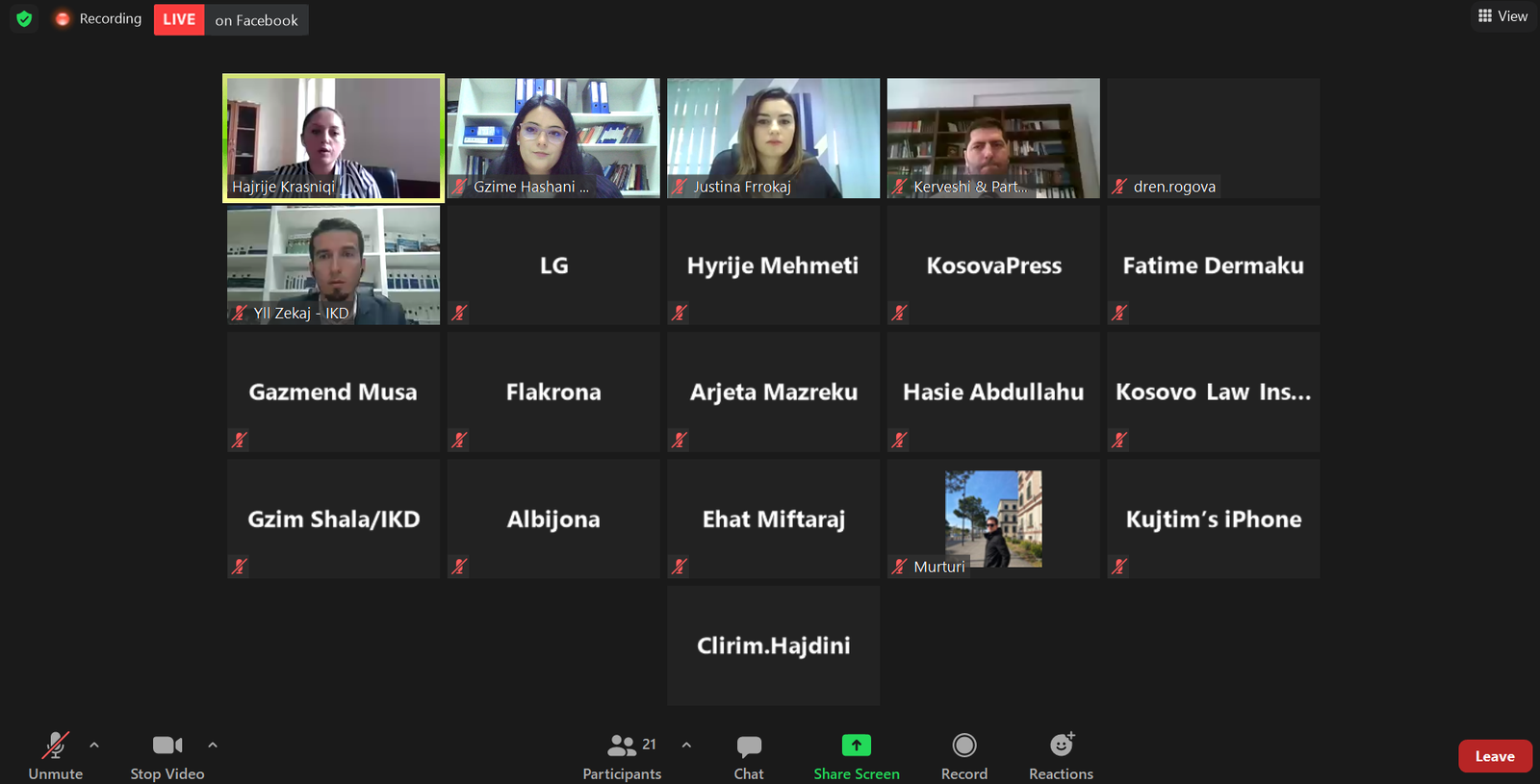 Prishtinë, 20 prill 2021 – Instituti i Kosovës për Drejtësi (IKD), me përkrahje të Departamentit të Shtetit Amerikan – Byrosë së Narkotikëve Ndërkombëtar dhe Çështjeve të Zbatimit të Ligjit (INL) dhe NED-it, të premten, ka mbajtur një tryezë virtuale në të cilën është prezantuar raporti “Sfidat e ndërmjetësimit në Kosovë”.