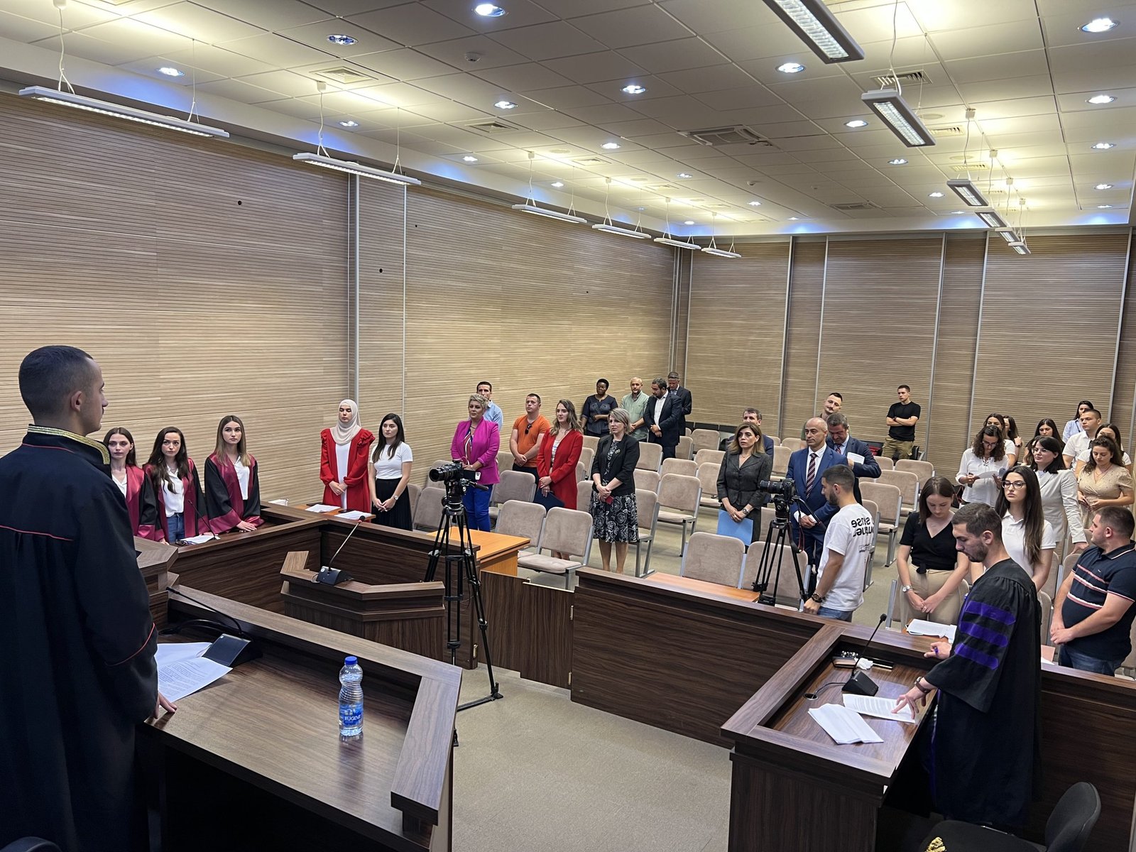 Në anën tjetër, Kryetarja e Gjykatës, znj. Shabani – Rama përshëndeti organizimin e këtij aktiviteti, si një mundësi e mirë që i jepet studentëve për të praktikuar pjesën teorike. Kryetarja Shabani – Rama edhe një herë shprehi gatishmërinë e saj për përkrahjen e aktiviteteve të tilla.