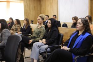 Kryetarja e Gjykatës, znj. Caka – Nimani i ka informuar studentët për rolin dhe funksionimin e Gjykatës Kushtetuese, procedurën dhe palët e autorizuara për parashtrimin e kërkesave, e po ashtu edhe procesin e përgatitjes dhe trajtimit të rasteve në Gjykatën Kushtetuese.