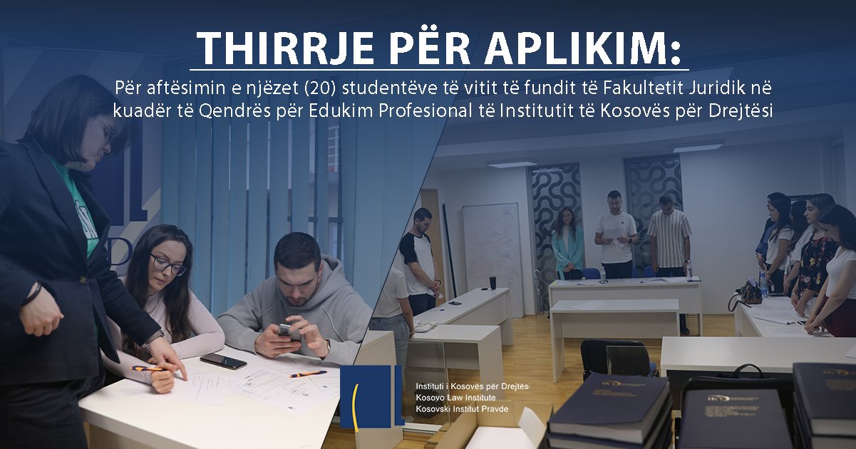 Për këtë qëllim, IKD shpall konkurs për njëzet (20) pozita të hapura për studentë të vitit të fundit të Fakultetit Juridik, për mentorim dhe aftësim në praktikë profesionale juridike, në bashkëpunim edhe me institucionet e tjera relevante.